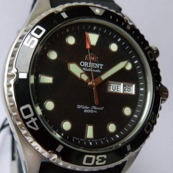 Мужские часы. Ударостойкое минеральное стекло. Дополнительные функции: Заводной ключ с резьбой, Механические часы с системой автоподзавода. Влагостойкий ремешок из натурального каучука. Размеры часов: 43 мм х 47 мм. Корпус изготовлен из нержавеющей стали. Водозащита часов 20 Атмосфер / 200м. Официальная гарантия 1 год. Торговая марка: Orient Япония.