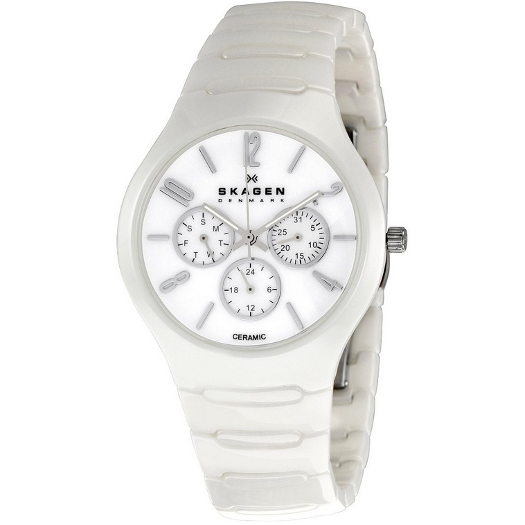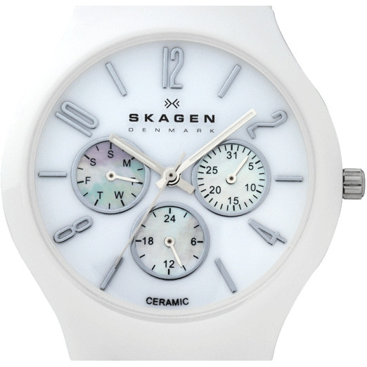 Элегантные женские часы. Ударостойкое минеральное стекло. Точный и надежный кварцевый механизм. Прочный керамический браслет. Размеры часов: диаметр 38 мм, толщина 9 мм. Керамический корпус не подвержен царапинам. Водозащита часов 3 Атмосферы / 30м. Официальная гарантия 1 год. Торговая марка: Skagen Дания.